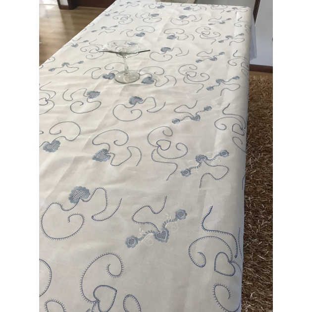 cor - linho cru ,cor do bordado -azul claro, e azul viana.