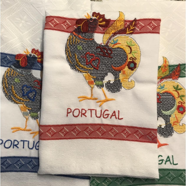 Pano de cozinha 1 bordado galo ponto cruz