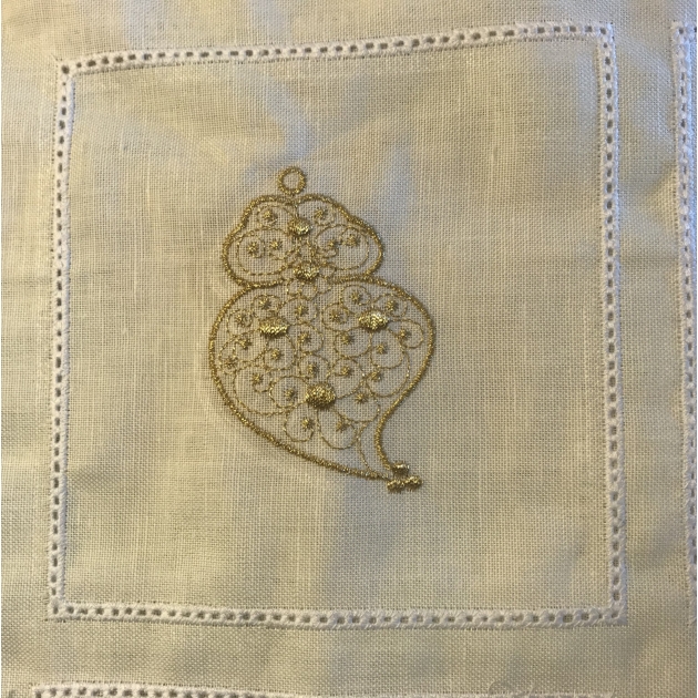 Conheça a nossa coleção de bordados e ajurados do coração. Ajurado em cru , bordado em linha de metal dourada ou prata . Bordado em linho de cor pérola :50%LINHO 50%ALGODÃO. Tamanho de cada aplicação :0,15cm x 0.15cm